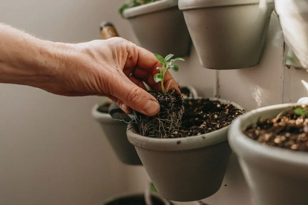 A adaptação não começa depois do transplante — ela deve iniciar antes de a muda ser colocada definitivamente na horta vertical. Um erro comum é posicionar a planta diretamente no painel final, acreditando que ela “vai se acostumar sozinha”.