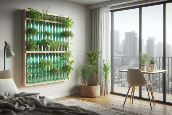 Horta vertical com garrafas PET em apartamento sem varanda (prática para iniciantes)